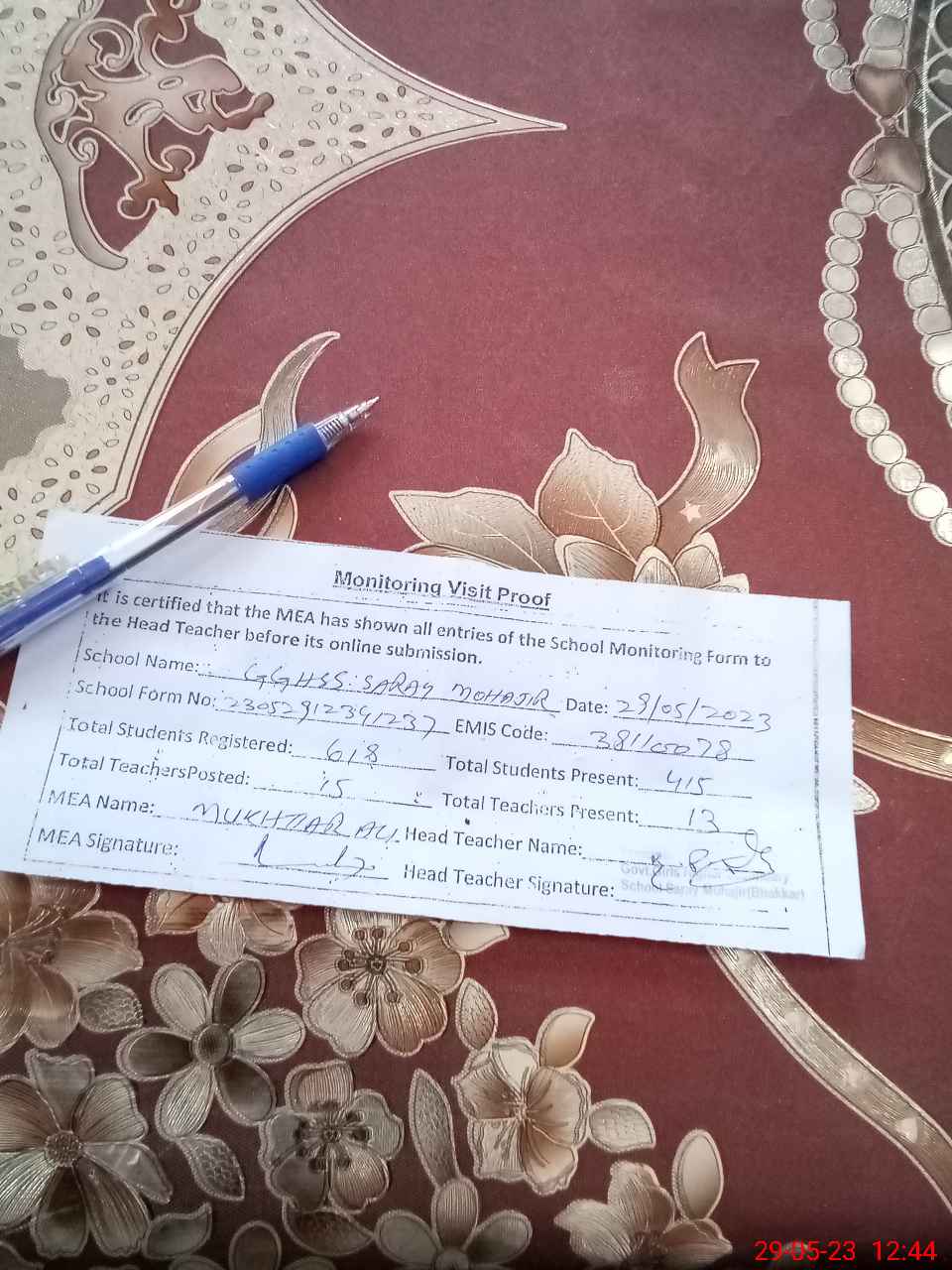 | Attendance Register | Head Teacher | MEA with School | Visit Proof |