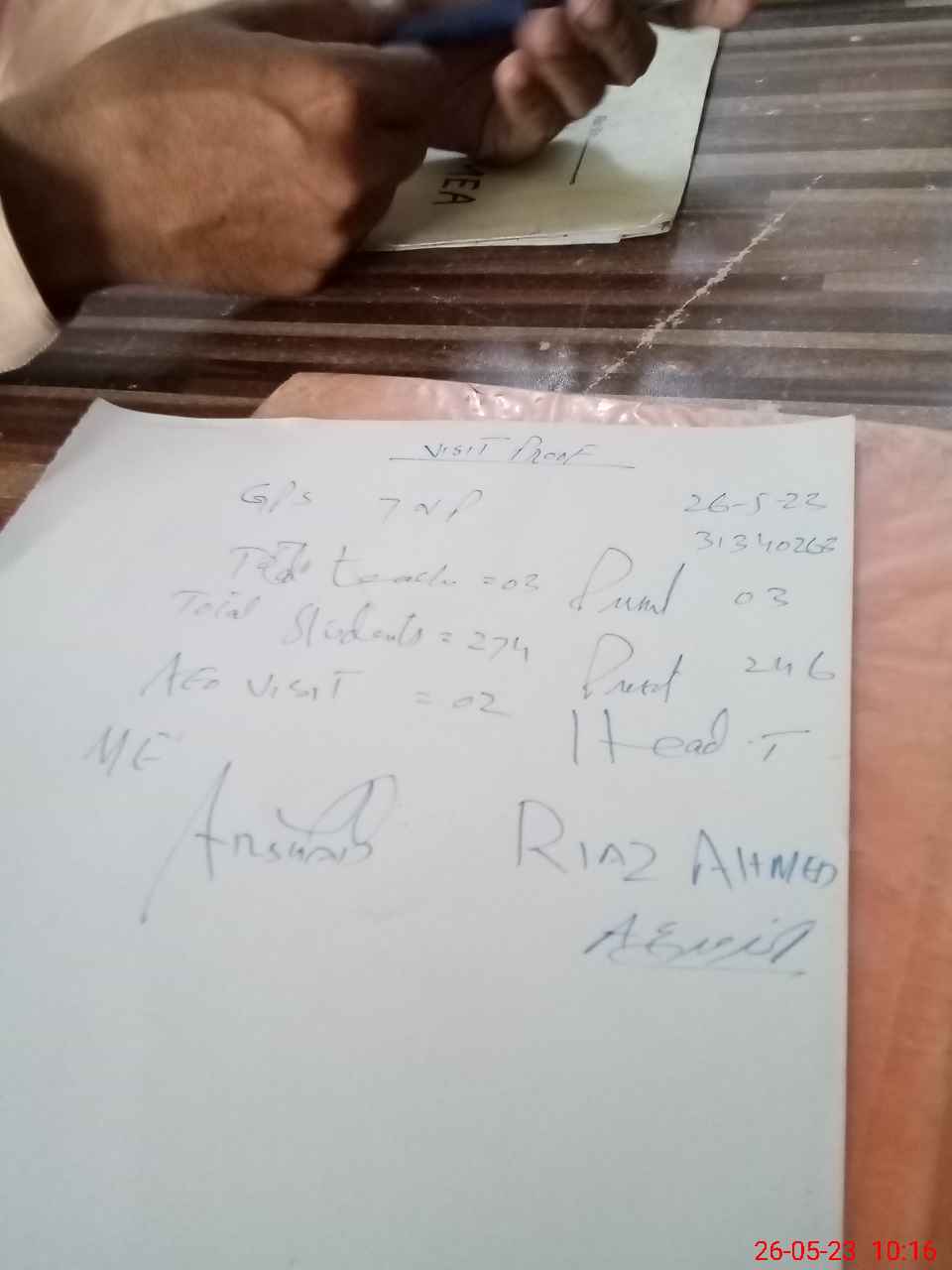 | Attendance Register | Head Teacher | MEA with School | Visit Proof |