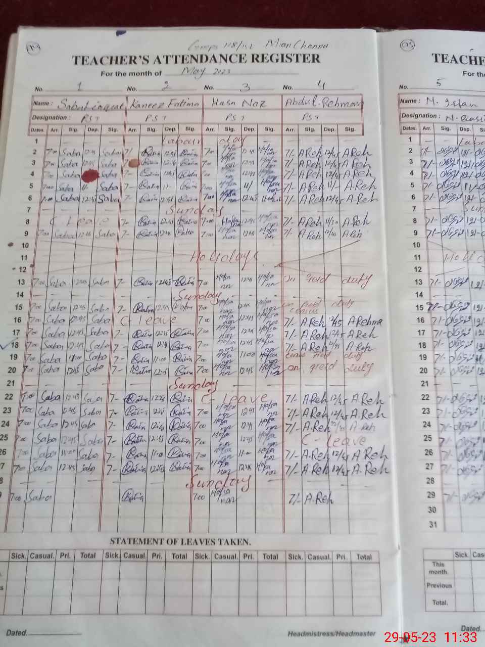 | Leave | Duty | Absent | Maternity | Medical | Ex- Pak |