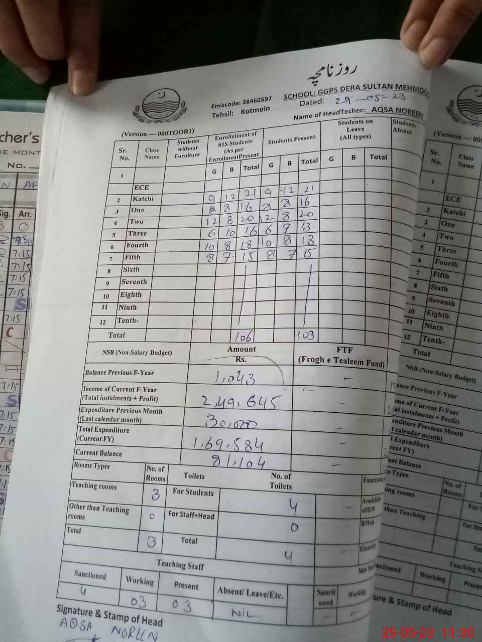 | EMIS Code: 38460597 | Name of School: GGPS DERA SULTAN MEHMOOD | |||
