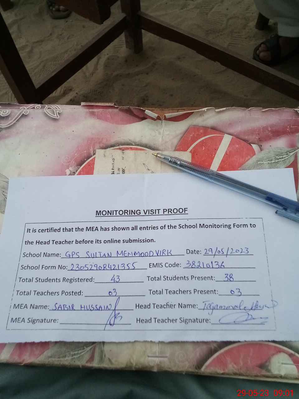 | EMIS Code: 38210136 | Name of School: GPS SULTAN MEHMOOD VIRK | |||