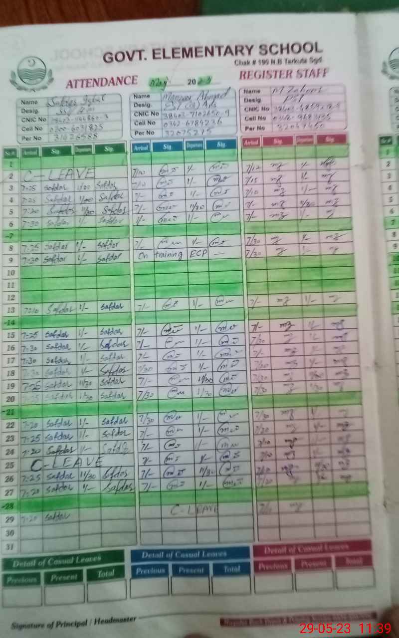 | CNIC | Full Name | Designation | R/C | Absence During Last Calender Month |