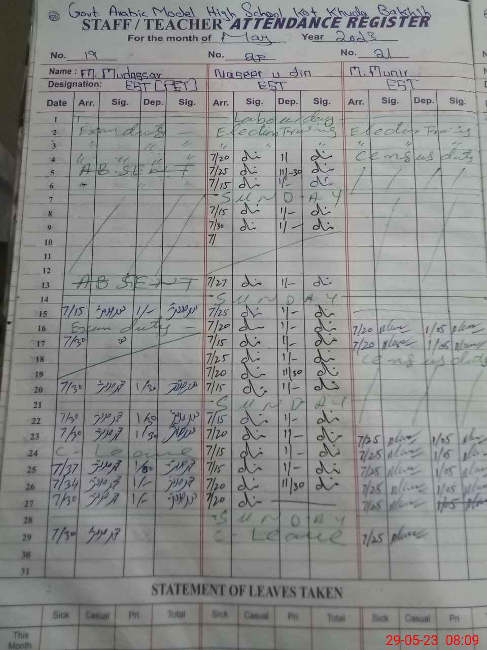 | 36**** | Mu**** Ak**** | Regular | 0 | 0 | 0 | 0 | 0 | 0 | 0 | 0 | 0 | Exam Duty | |