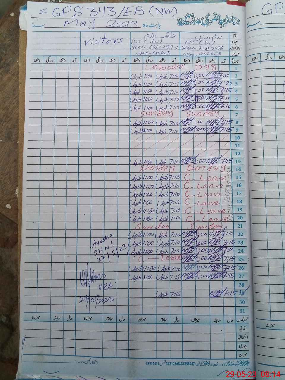 | CNIC | Full Name | Designation | R/C | Absence During Last Calender Month |