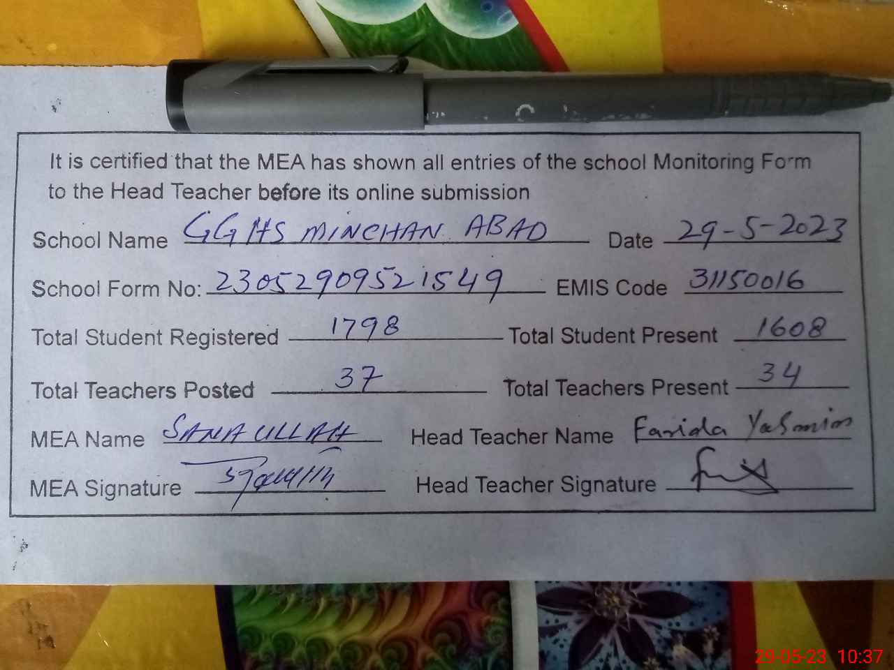| EMIS Code: 31150016 | Name of School: GGHS MINCHIN ABAD | |||