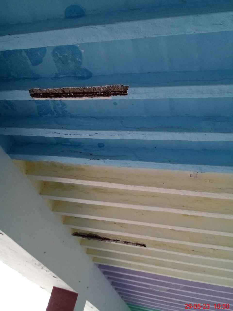 | Total no. of Classrooms: 7 No. of Classrooms Used for Teaching: 7 No. of Classrooms Storing Old Furniture, FTBs, etc: 0Comments if Any: School building is old cieling plaster falling from different areas sample pic in head window |