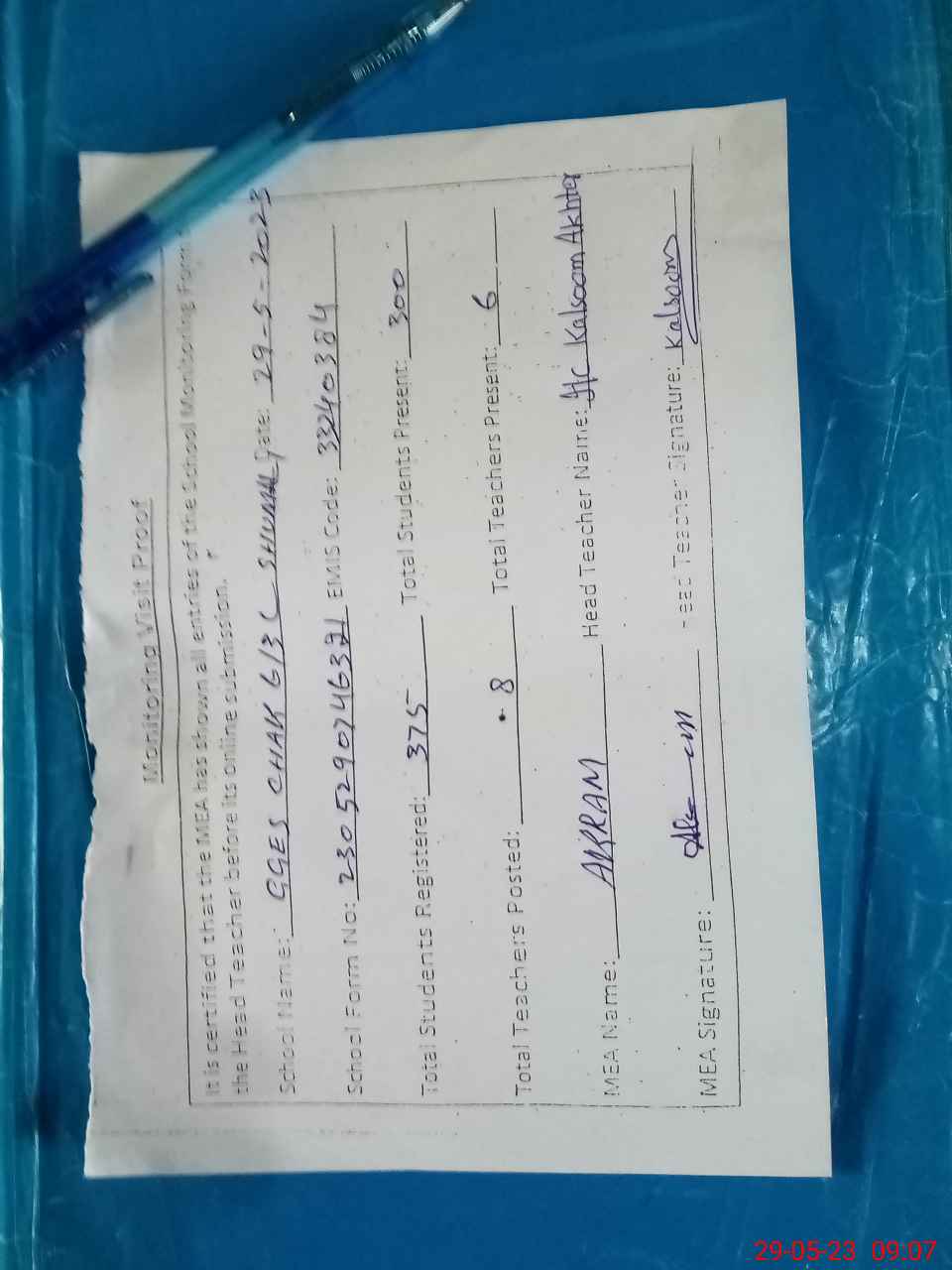 | EMIS Code: 33240384 | Name of School: GGES CHAK NO 6/3L SHUMALI | |||