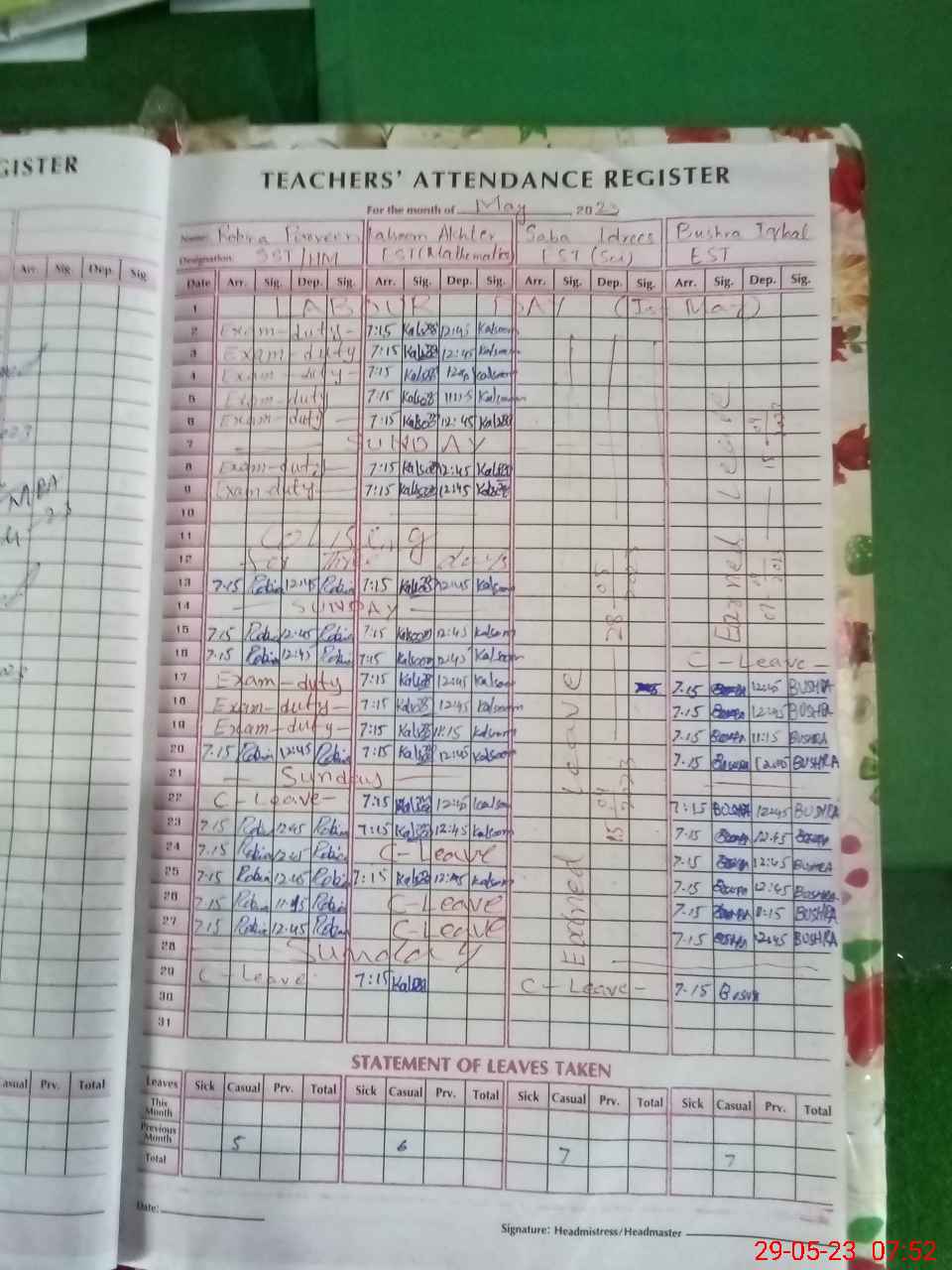 | 33**** | Ro**** Pe**** | Regular | 1 | 28 | 0 | 0 | 0 | 0 | 0 | 0 | 1 | Absent (Un-Authorized) | |