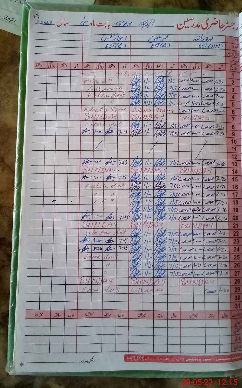 | 36**** | If**** UlHa**** | Regular | 0 | 9 | 0 | 0 | 0 | 0 | 0 | 0 | 0 | Exam Duty | |