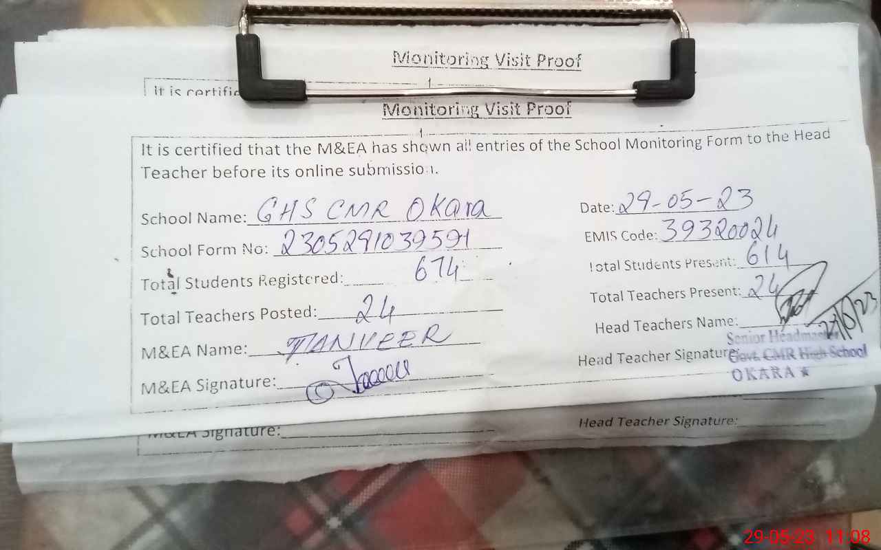 | EMIS Code: 39320024 | Name of School: GHS CMR OKARA | |||