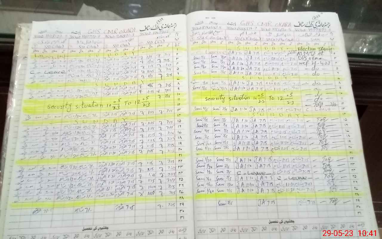 | CNIC | Full Name | Designation | R/C | Absence During Last Calender Month |