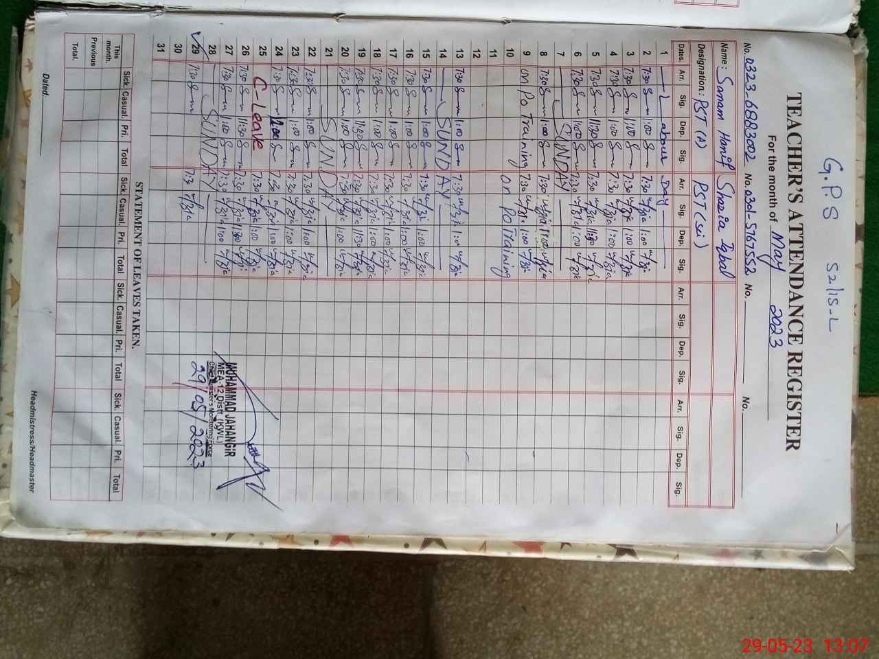| Remarks (Use Separate Page if Required): KATCHI CLASS STUDENTS UPTO 15 MAY 2023 ATTENDANCE MARKED AFTER THIS NO ATTENDANCE IN REGISTER RANDOM CLASS ONE IS NOW IN CLASS THREE MUHAMMAD NAEEM PST HAS BEEN TRANSFERRED FROM THIS SCHOOL ON 22 JULY 2022 BUT HIS NAME IS STILL IN LIST OF PMIU | |||||