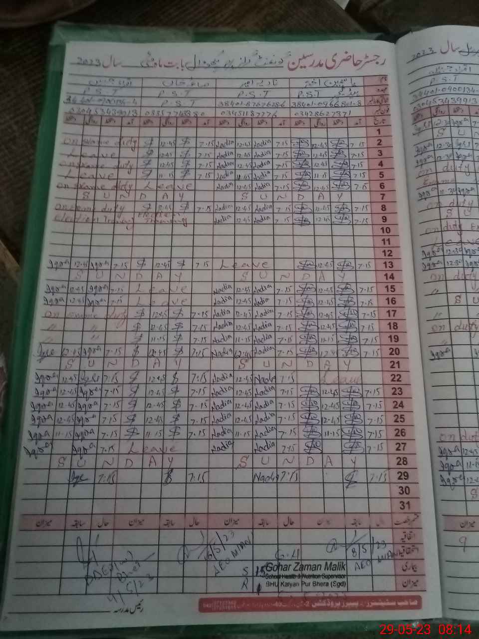 | Name: A Designation: (School Headmaster's/Headmistress's) PST Phone/Cell Number: 03**** |