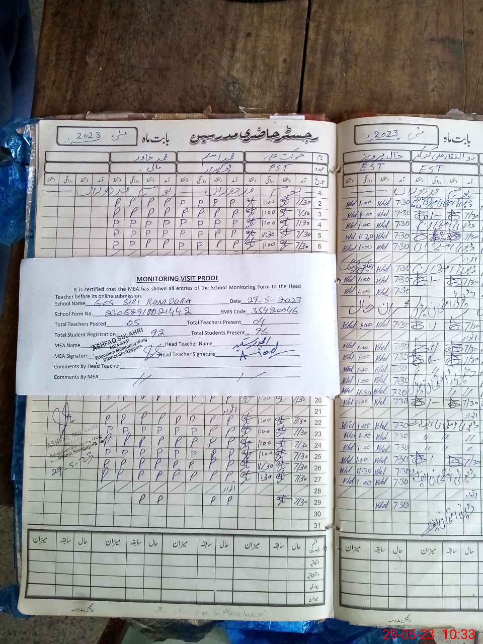 | Attendance Register | Head Teacher | MEA with School | Visit Proof |
