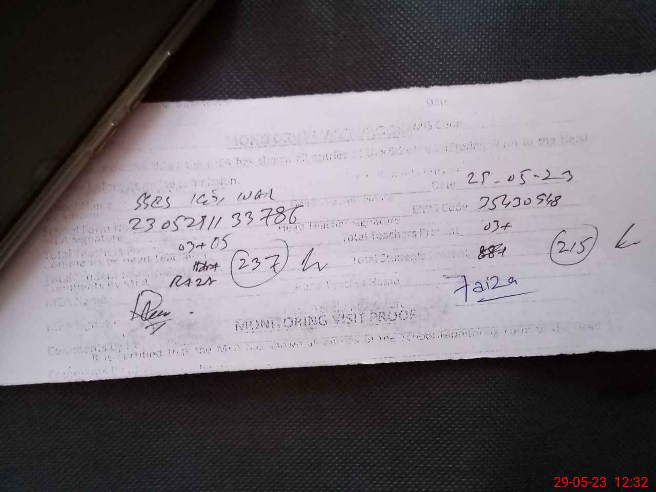 | Monitoring Date: 29-05-2023 | Start Time: 29-05-2023 11:08 AM | End Time: 29-05-2023 12:36 PM | Name of MEA: Ra**** Hu**** Gi**** | |