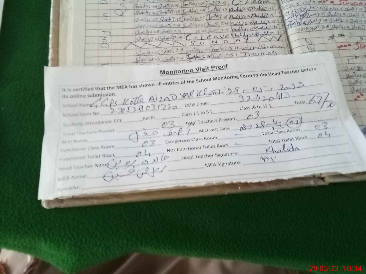 | EMIS Code: 32420413 | Name of School: GGPS KOTLA AIZAD YAR KHAN | |||