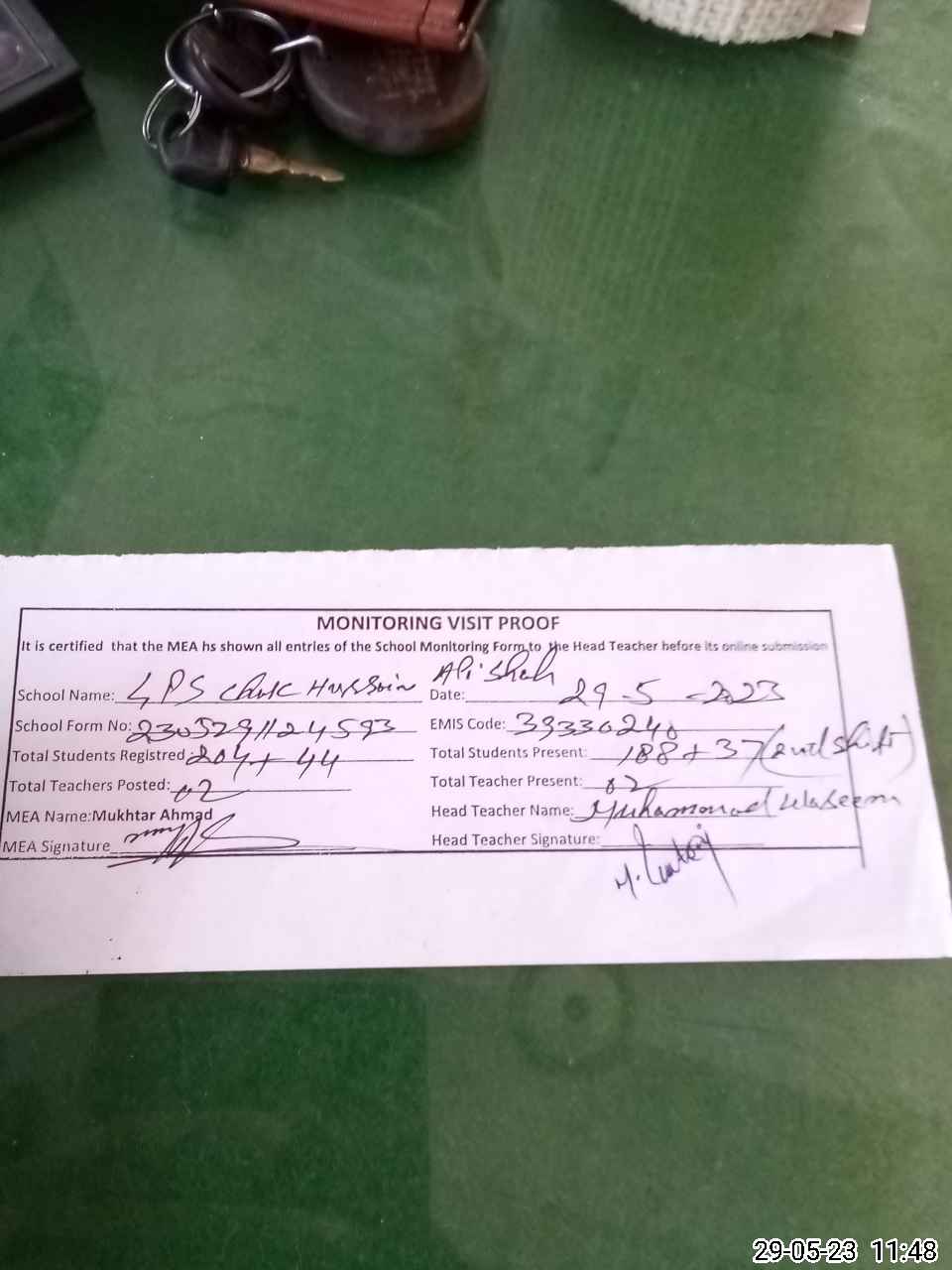 | EMIS Code: 39330240 | Name of School: GPS CHAK HUSSAIN ALI SHAH | |||