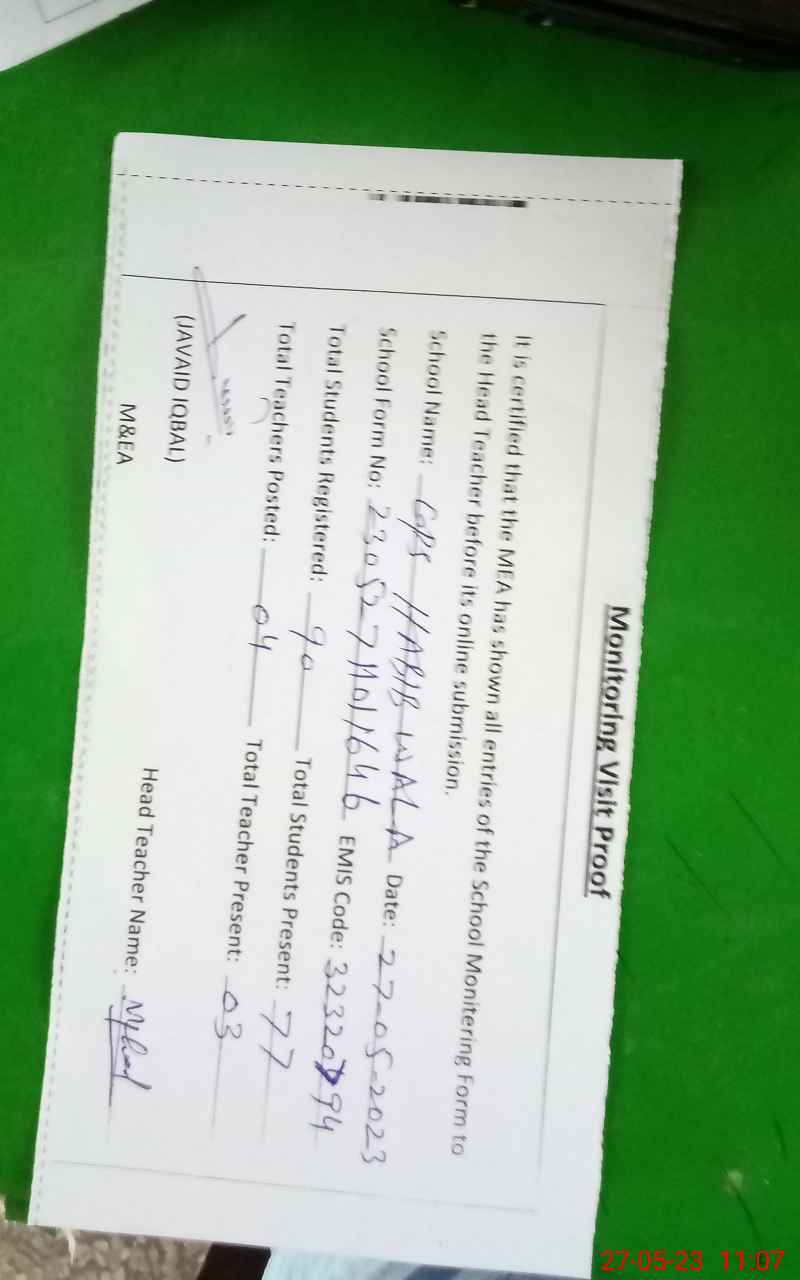 | EMIS Code: 32320794 | Name of School: GPS HABIB WALA | |||