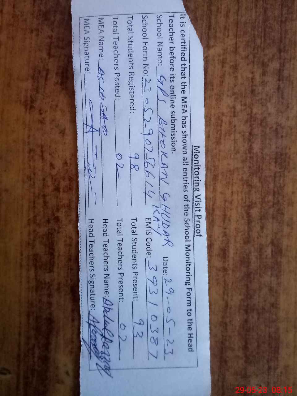 | EMIS Code: 39310387 | Name of School: GPS BHOKAN GHUDAR KAY | |||
