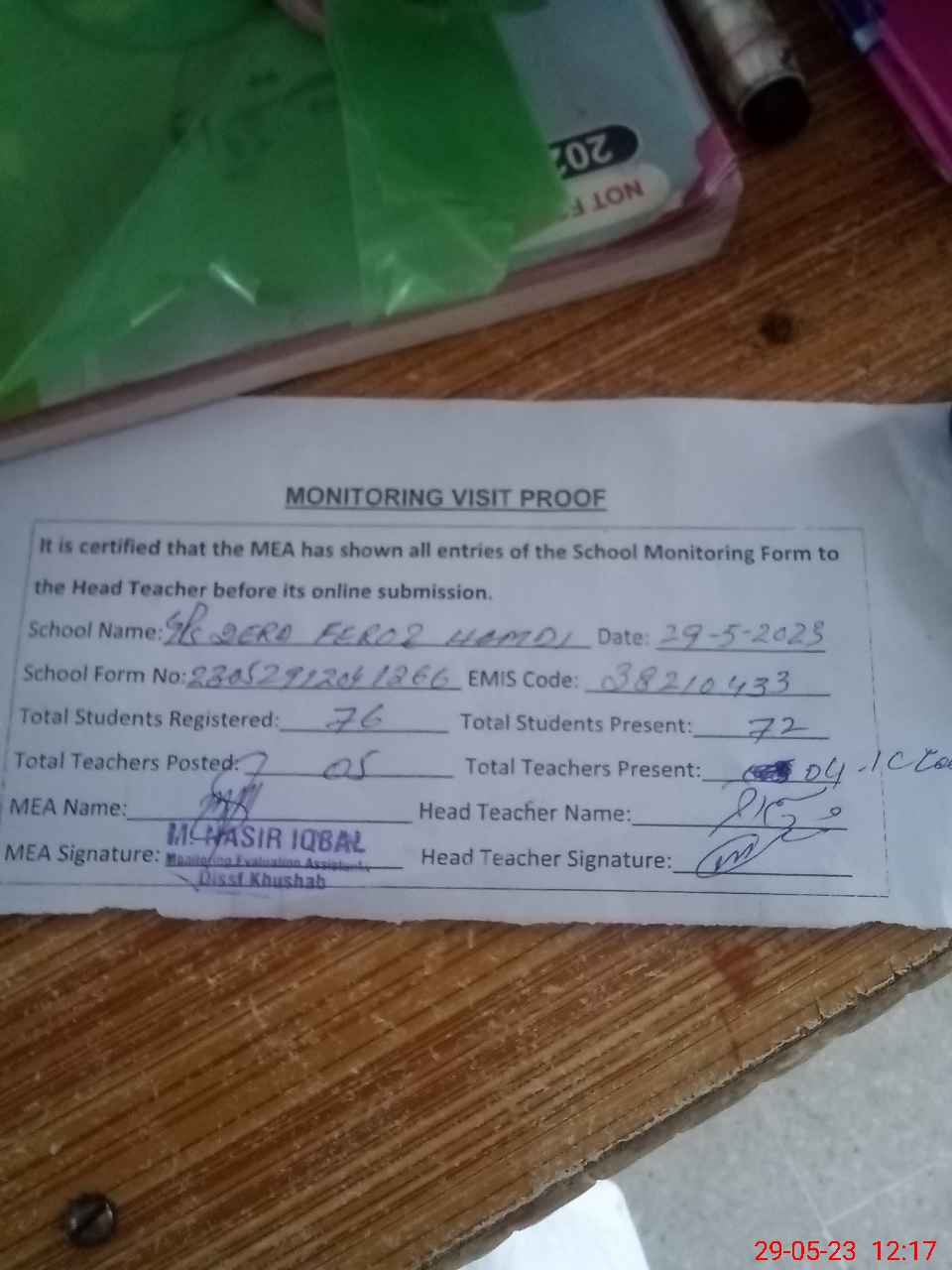 | EMIS Code: 38210433 | Name of School: GPS DERA FEROZ HAMDI | |||