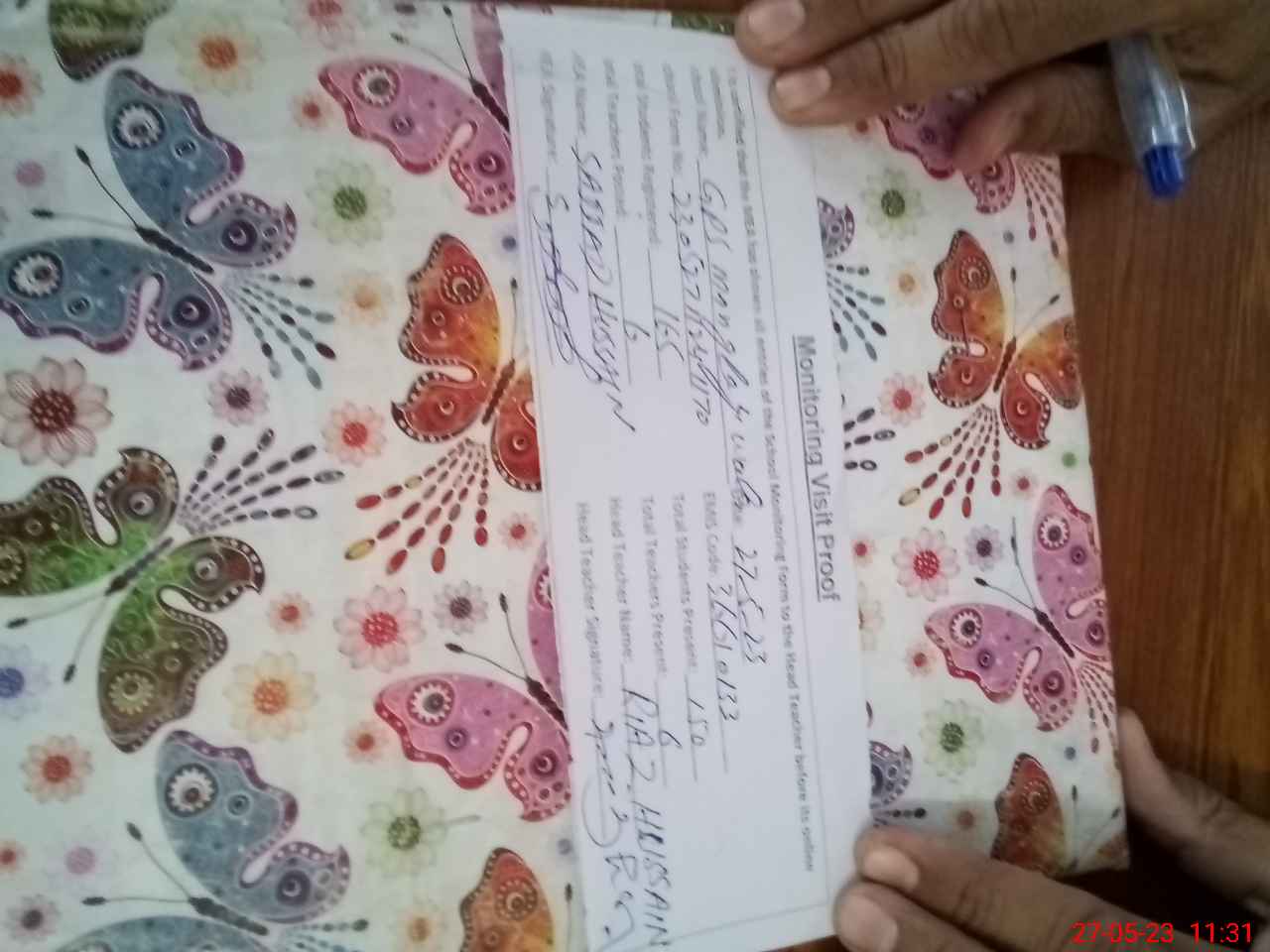 | Monitoring Date: 27-05-2023 | Start Time: 27-05-2023 11:10 AM | End Time: 27-05-2023 11:32 AM | Name of MEA: Ma**** Sa**** Hu**** | |