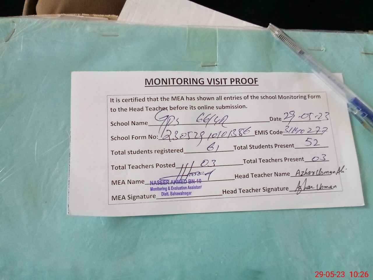 | EMIS Code: 31140277 | Name of School: GPS CHAK NO. 67/4-R | |||