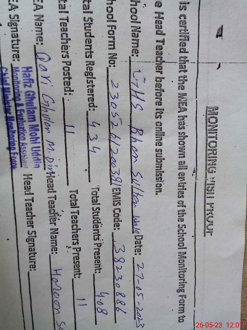 | EMIS Code: 38230886 | Name of School: GHS BHAN SULTAN WALA KHUSHAB | |||