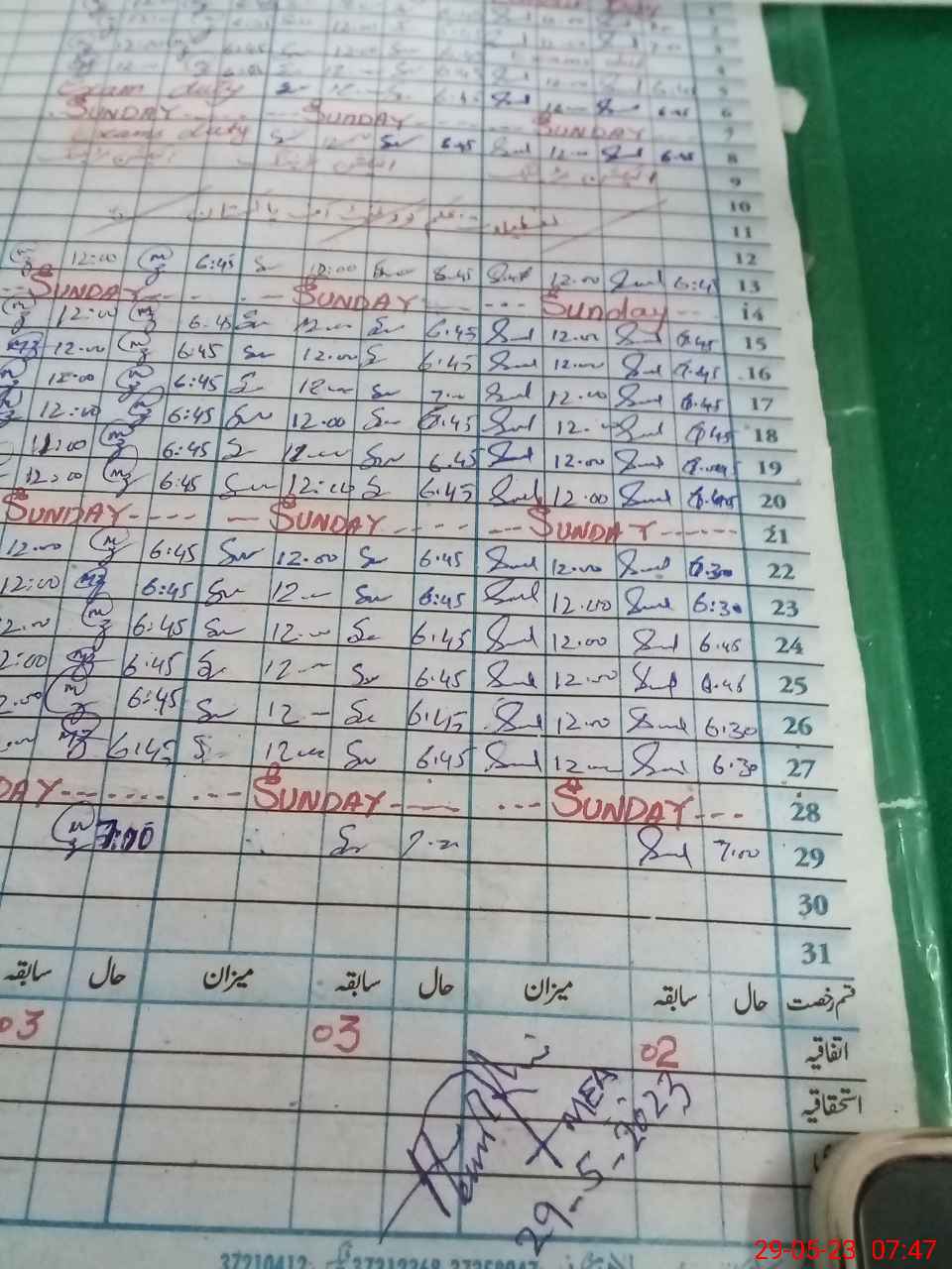 | CNIC | Full Name | Designation | R/C | Absence During Last Calender Month |