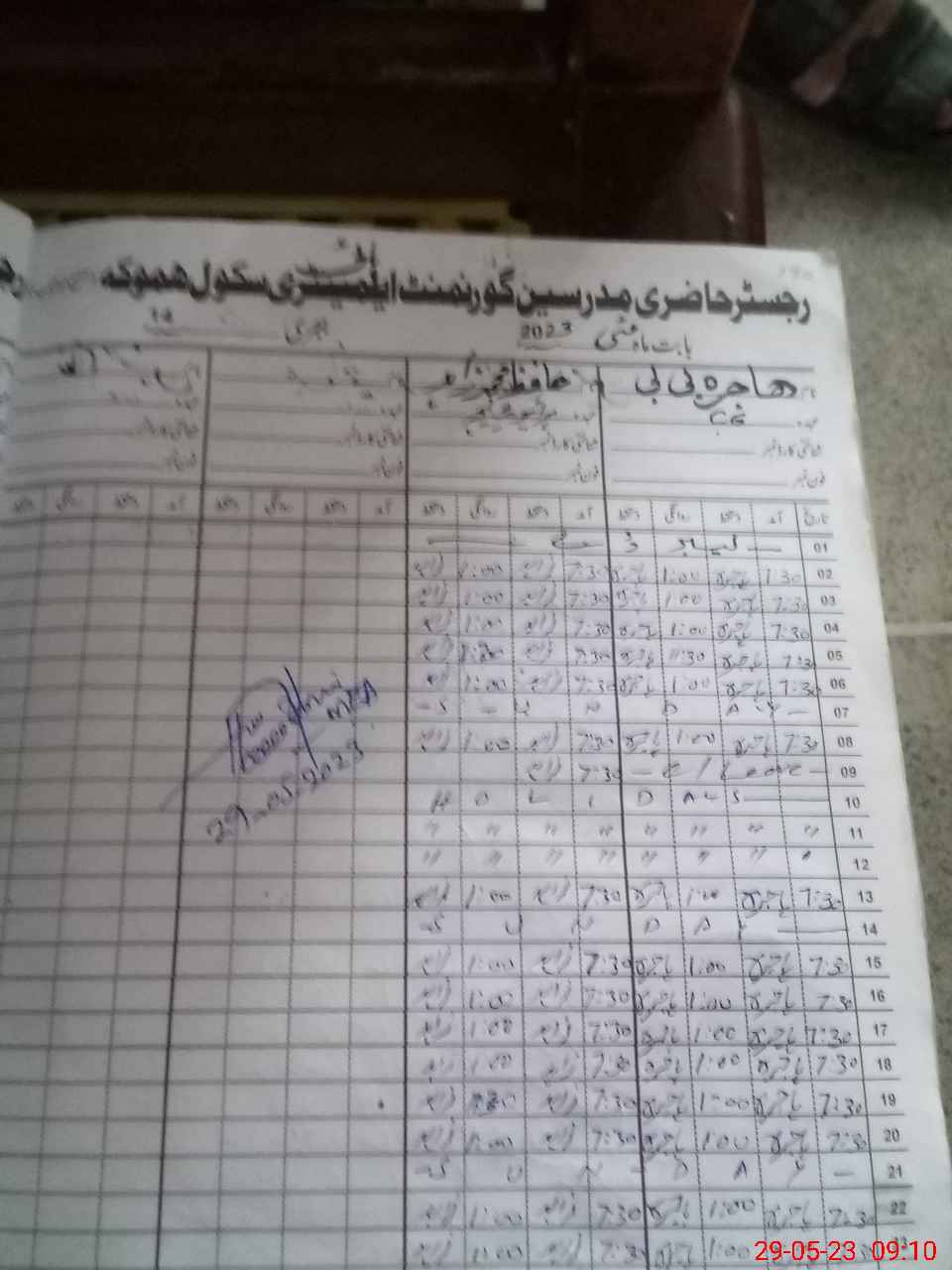 | Name: Mu**** Ra**** Designation: (School Headmaster's/Headmistress's) HEADMASTER Phone/Cell Number: 03**** |