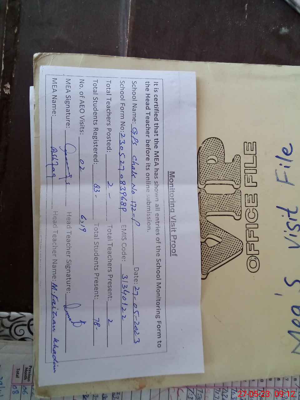 | EMIS Code: 31340122 | Name of School: GPS CHAK NO 172/P | |||