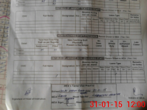 | Attendance Register | Head Teacher | MEA with School | Visit Proof |