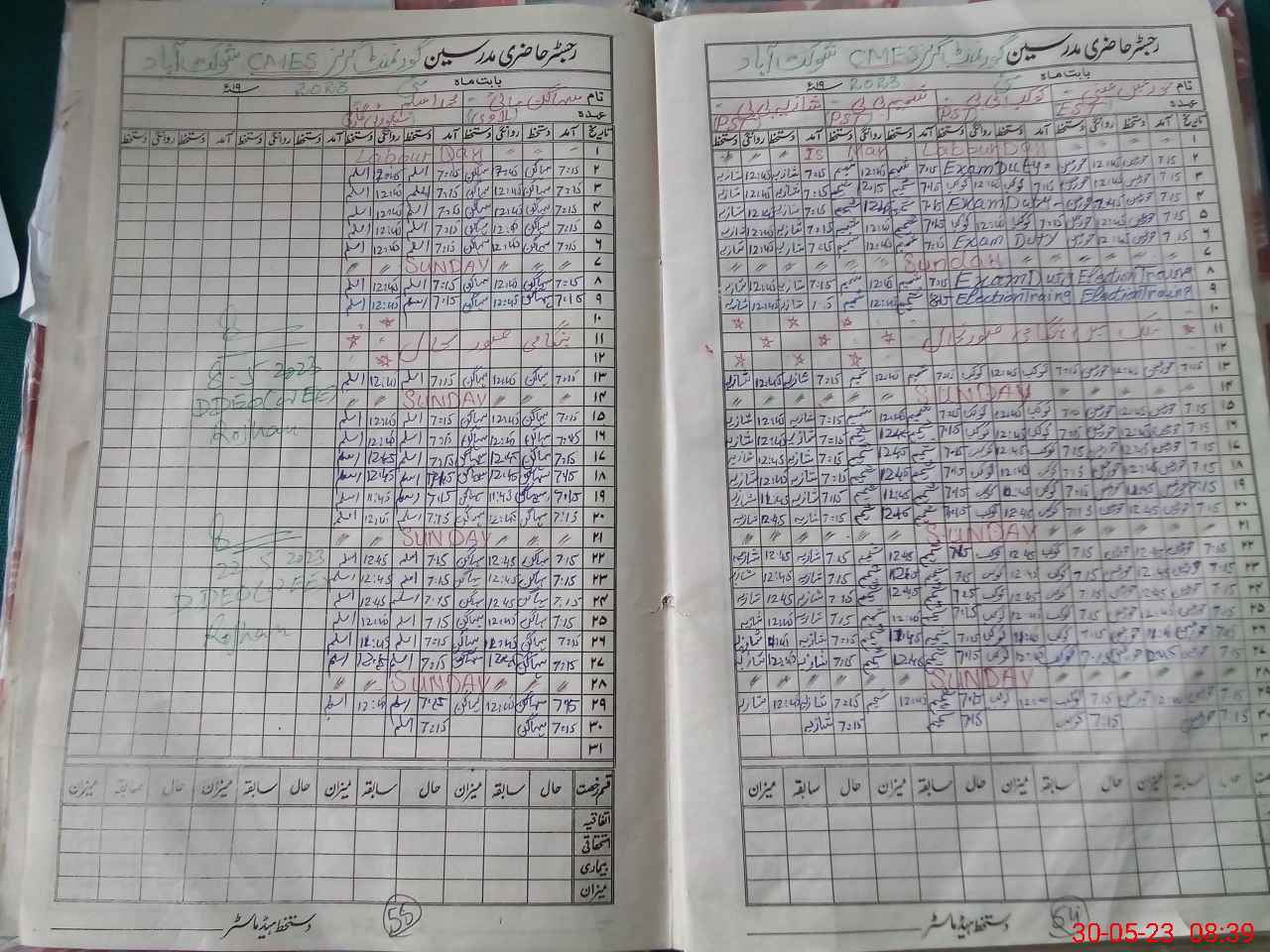 | CNIC | Full Name | Designation | R/C | Absence During Last Calender Month |