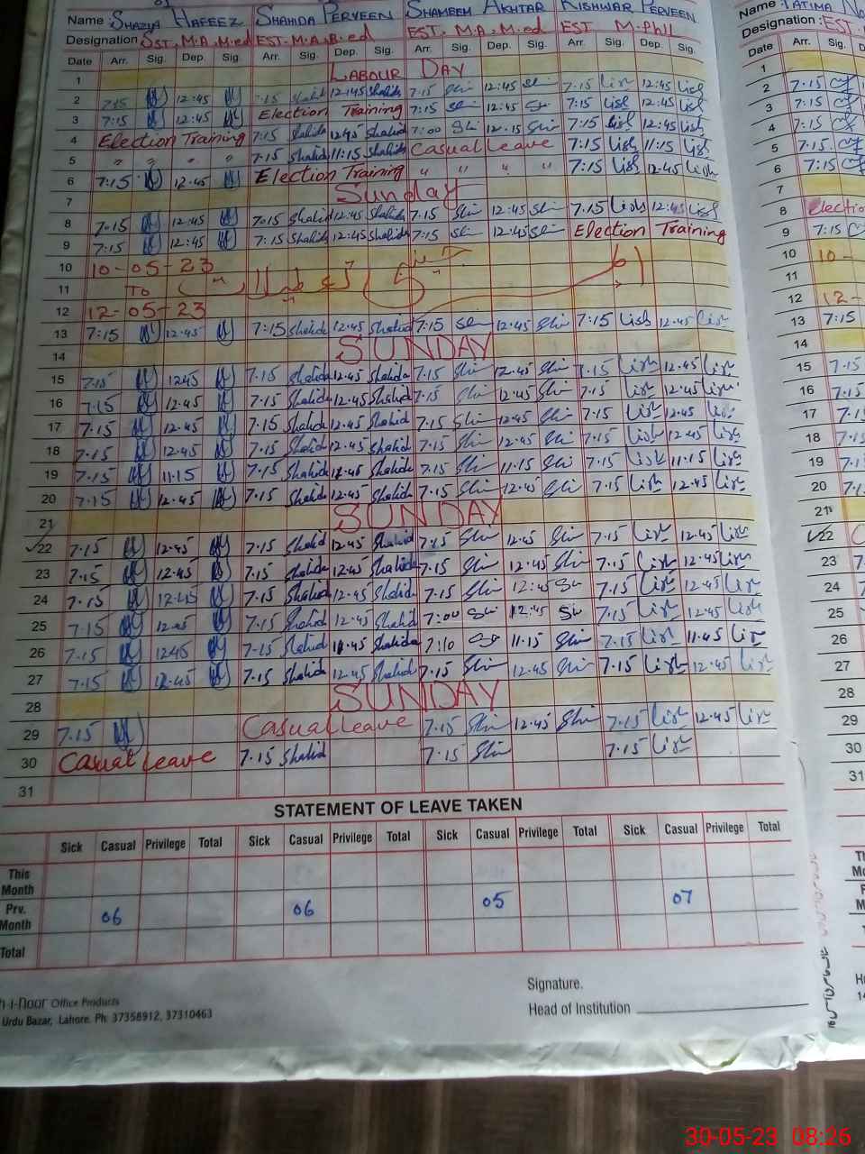| Monitoring Date: 30-05-2023 | Start Time: 30-05-2023 08:26 AM | End Time: 30-05-2023 09:05 AM | Name of MEA: SH**** AL**** ZI**** (R**** | |