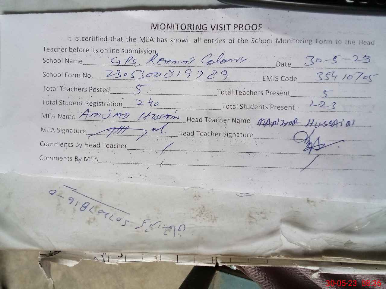 | EMIS Code: 35410705 | Name of School: GPS REHMAT COLONY FEROZWALA | |||