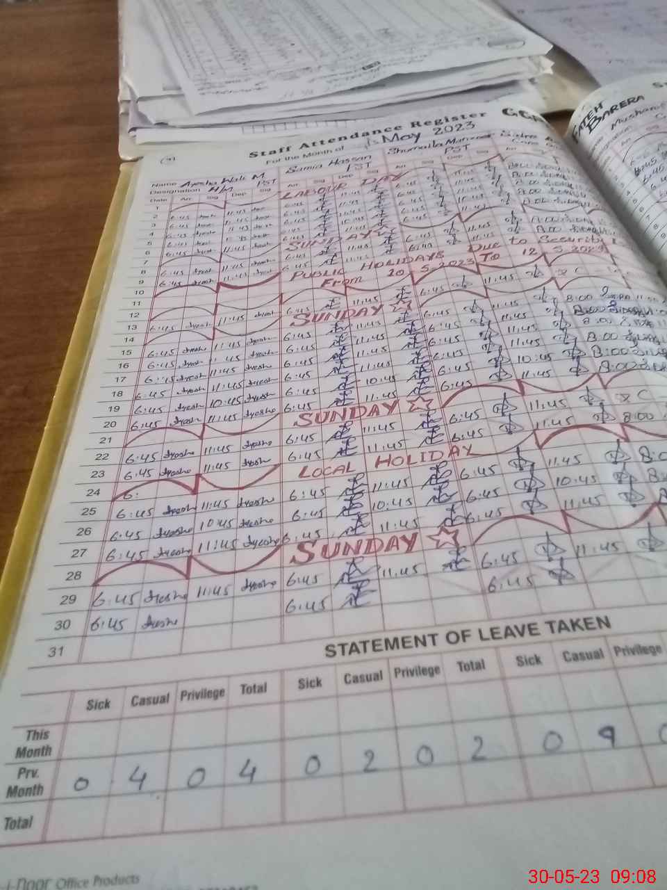 | CNIC | Full Name | Designation | R/C | Absence During Last Calender Month |