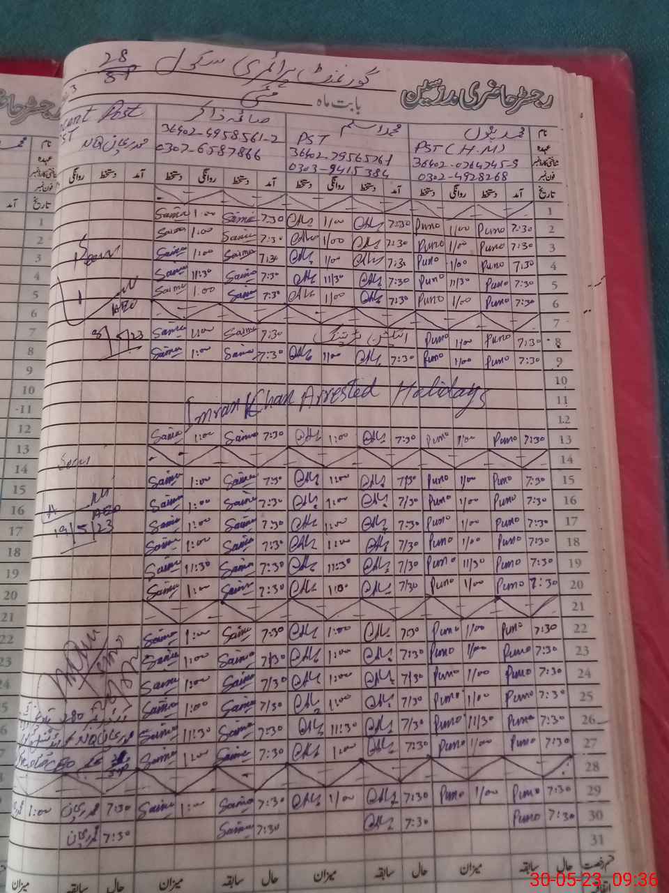 | Name: MU**** PU**** Designation: (School Headmaster's/Headmistress's) PST Phone/Cell Number: 03**** |