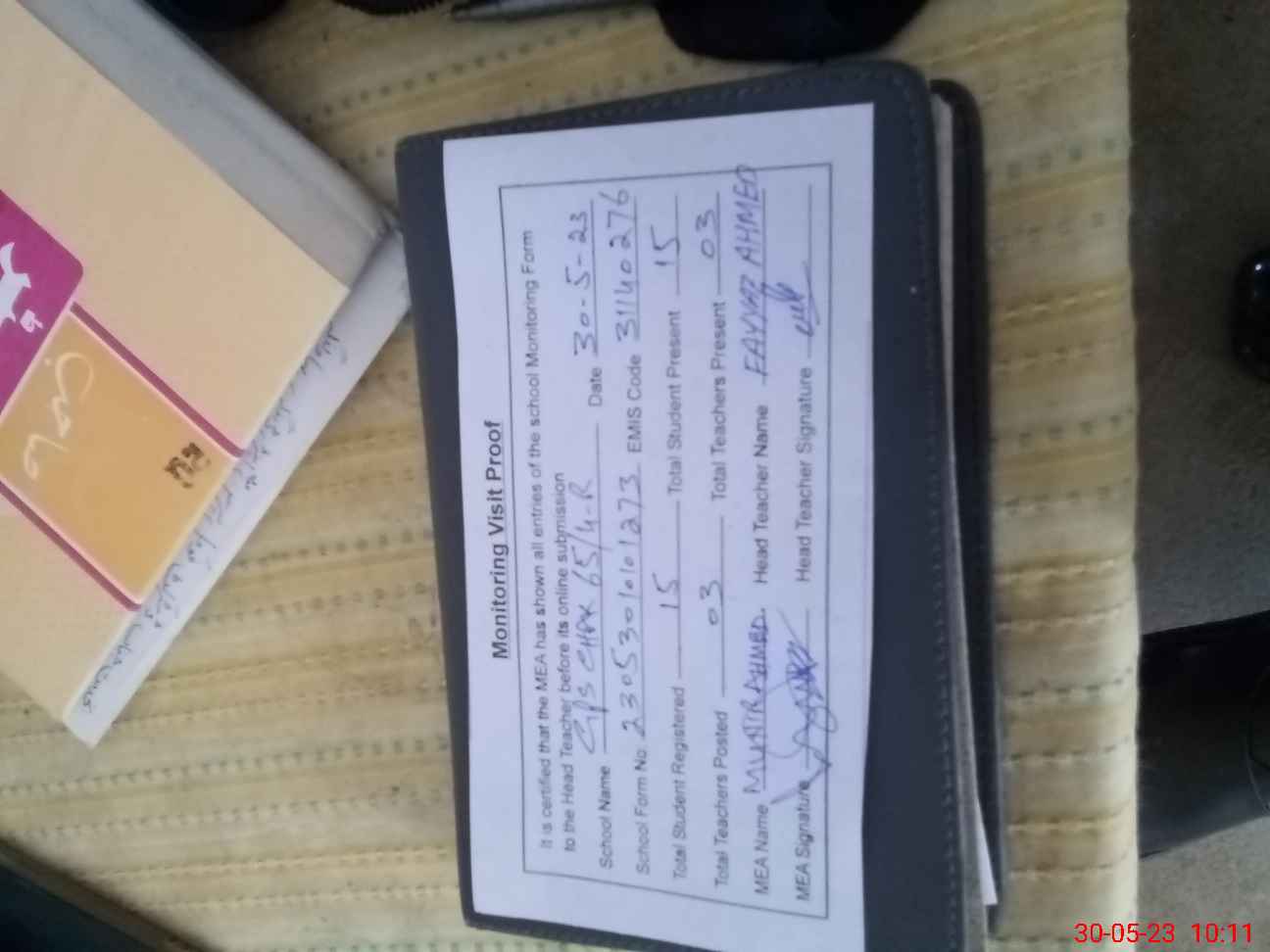| Attendance Register | Head Teacher | MEA with School | Visit Proof |
