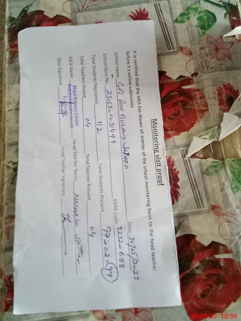 | EMIS Code: 32320688 | Name of School: GPS PIR BULAND JADEED | |||
