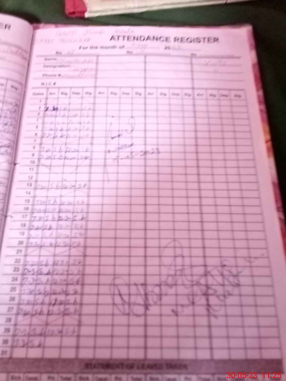 | CNIC | Full Name | Designation | R/C | Absence During Last Calender Month |