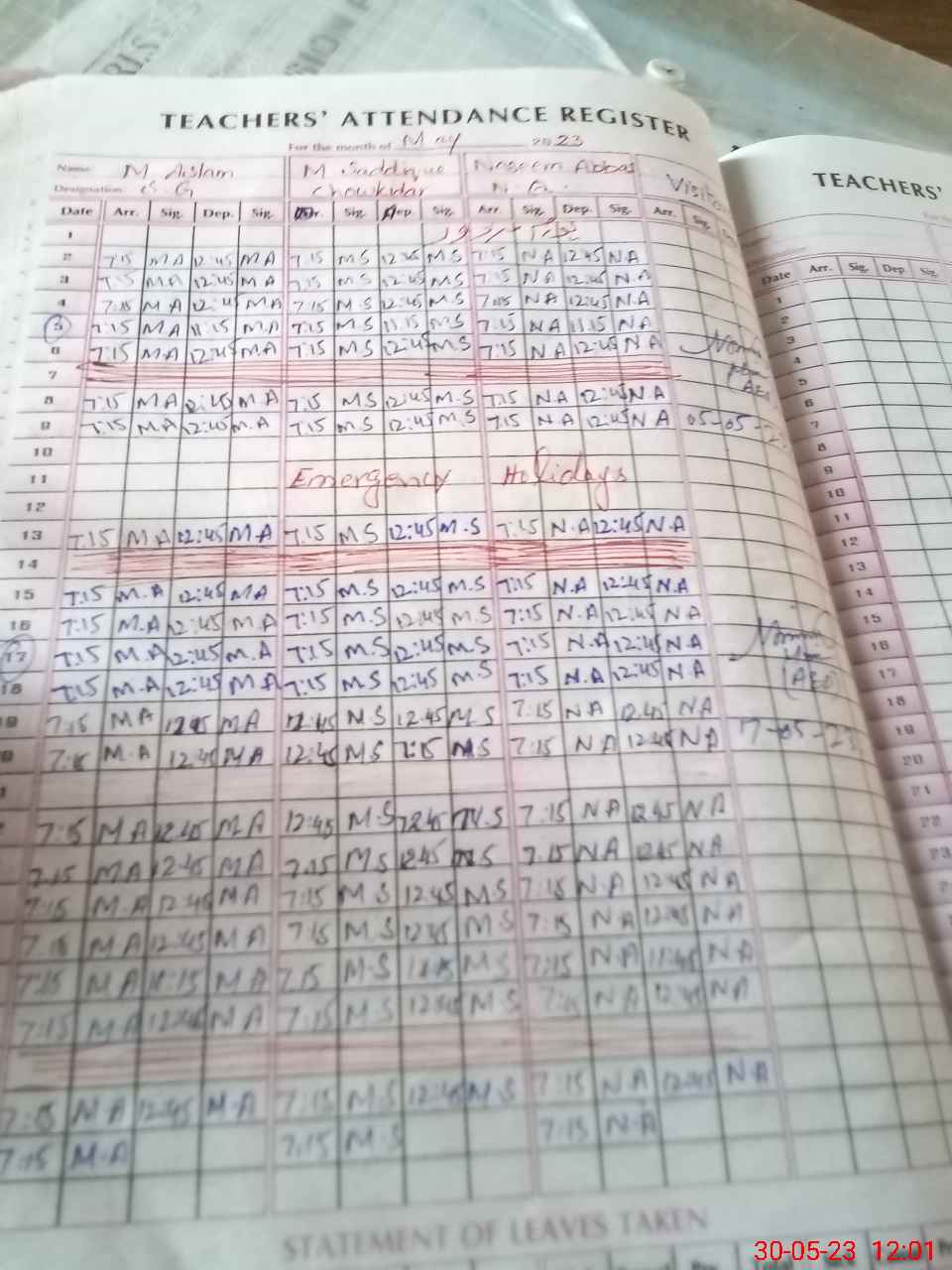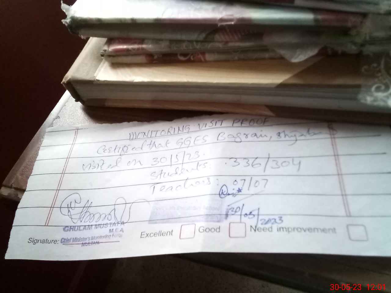 | Attendance Register | Head Teacher | MEA with School | Visit Proof |