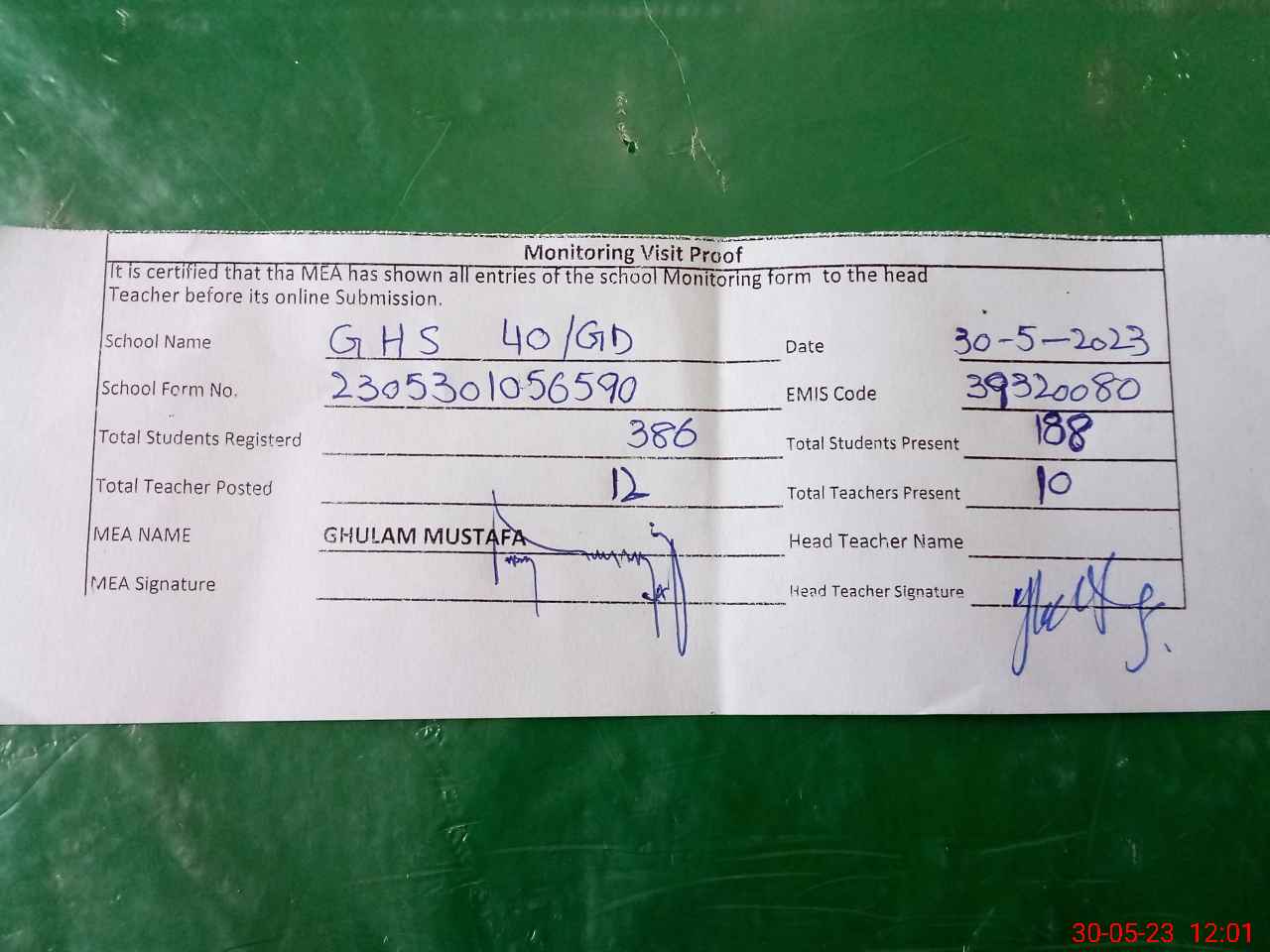 | EMIS Code: 39320080 | Name of School: GHS 40/G.D | |||