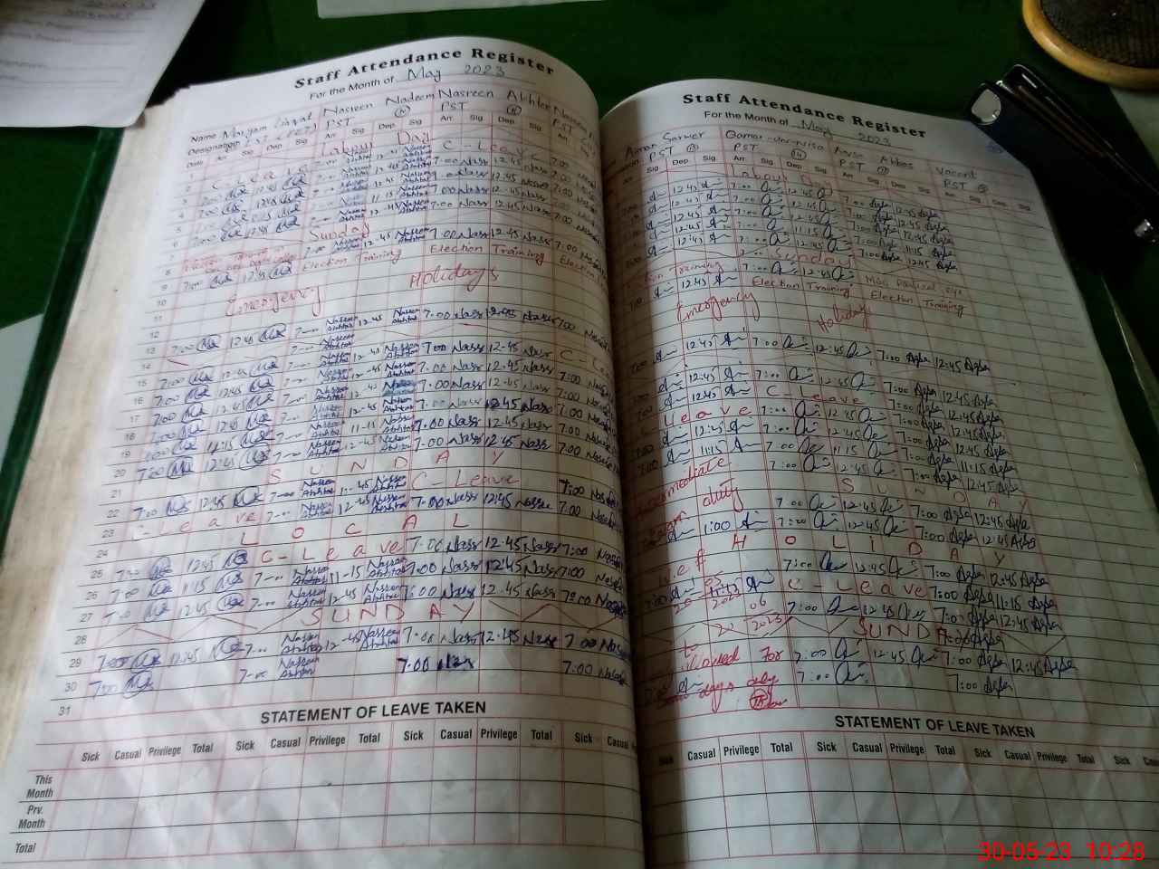 | Leave | Duty | Absent | Maternity | Medical | Ex- Pak |