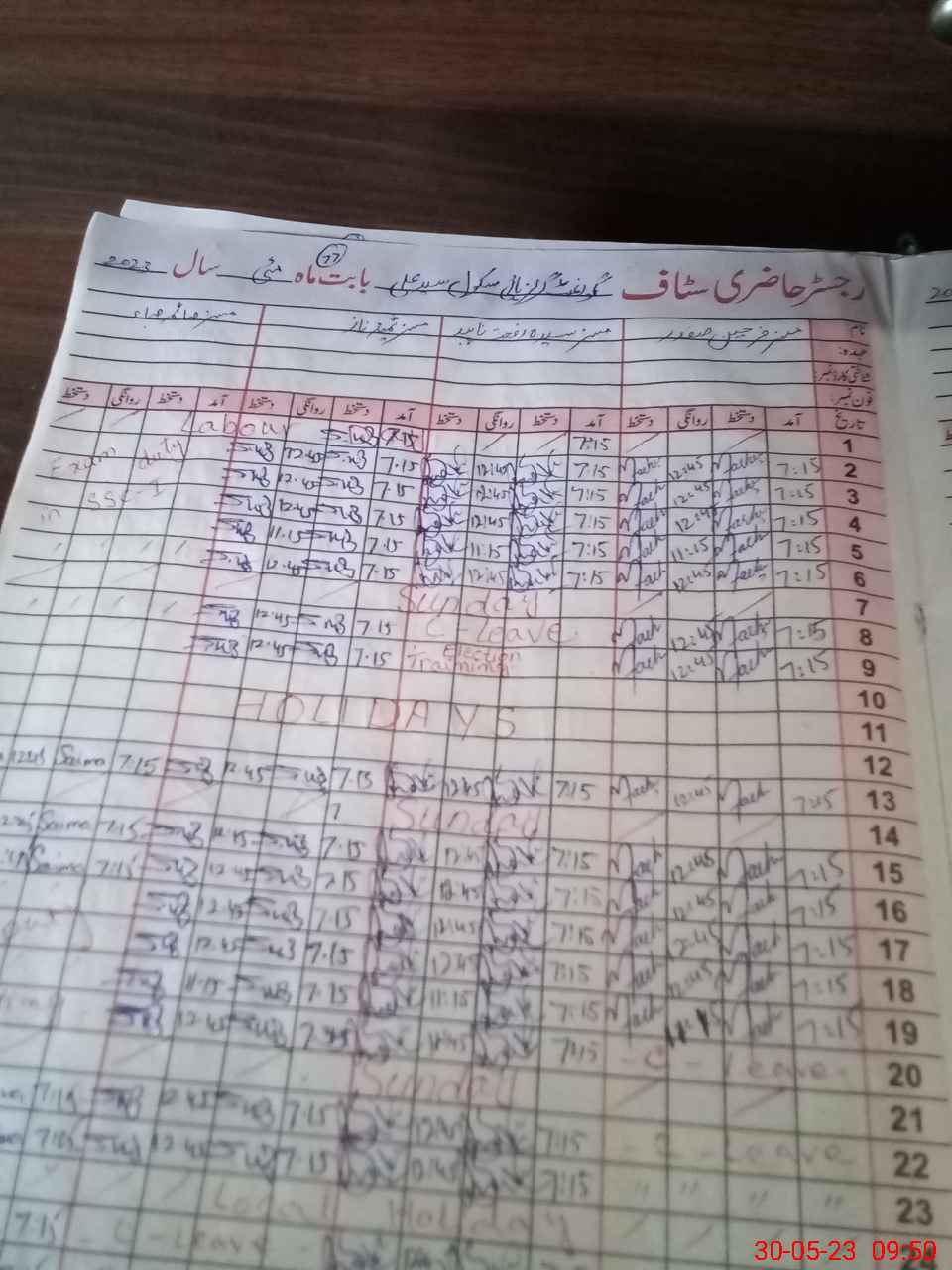 | CNIC | Full Name | Designation | R/C | Absence During Last Calender Month |