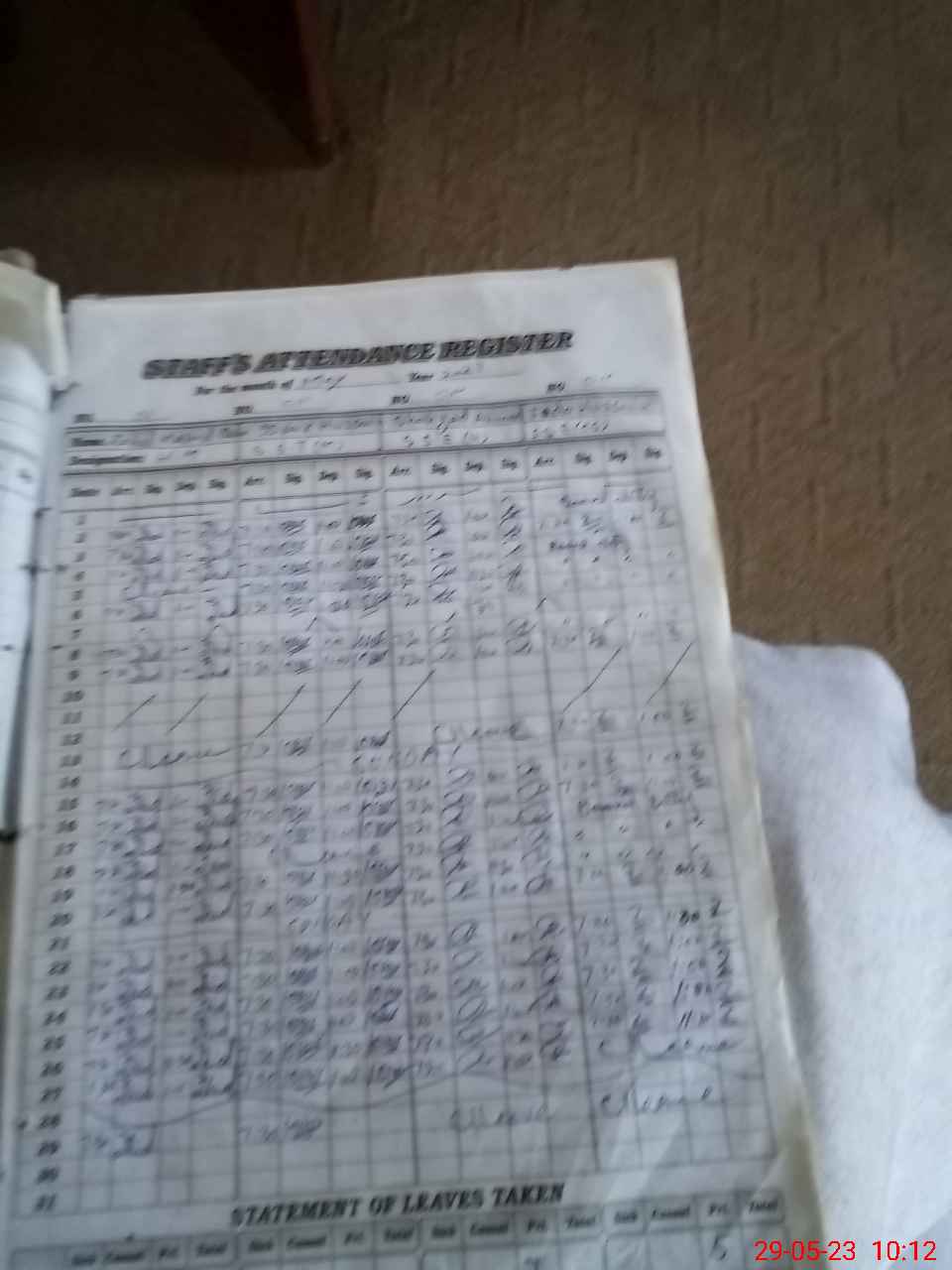 | Leave | Duty | Absent | Maternity | Medical | Ex- Pak |