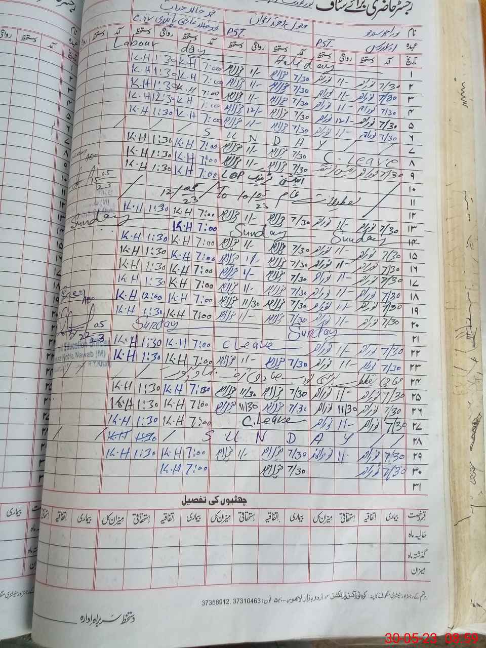 | CNIC | Full Name | Designation | R/C | Absence During Last Calender Month |