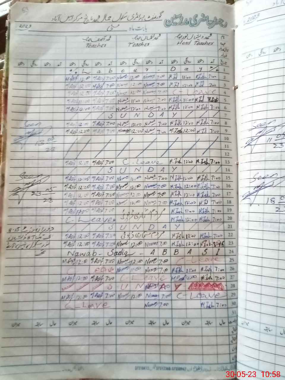 | CNIC | Full Name | Designation | R/C | Absence During Last Calender Month |