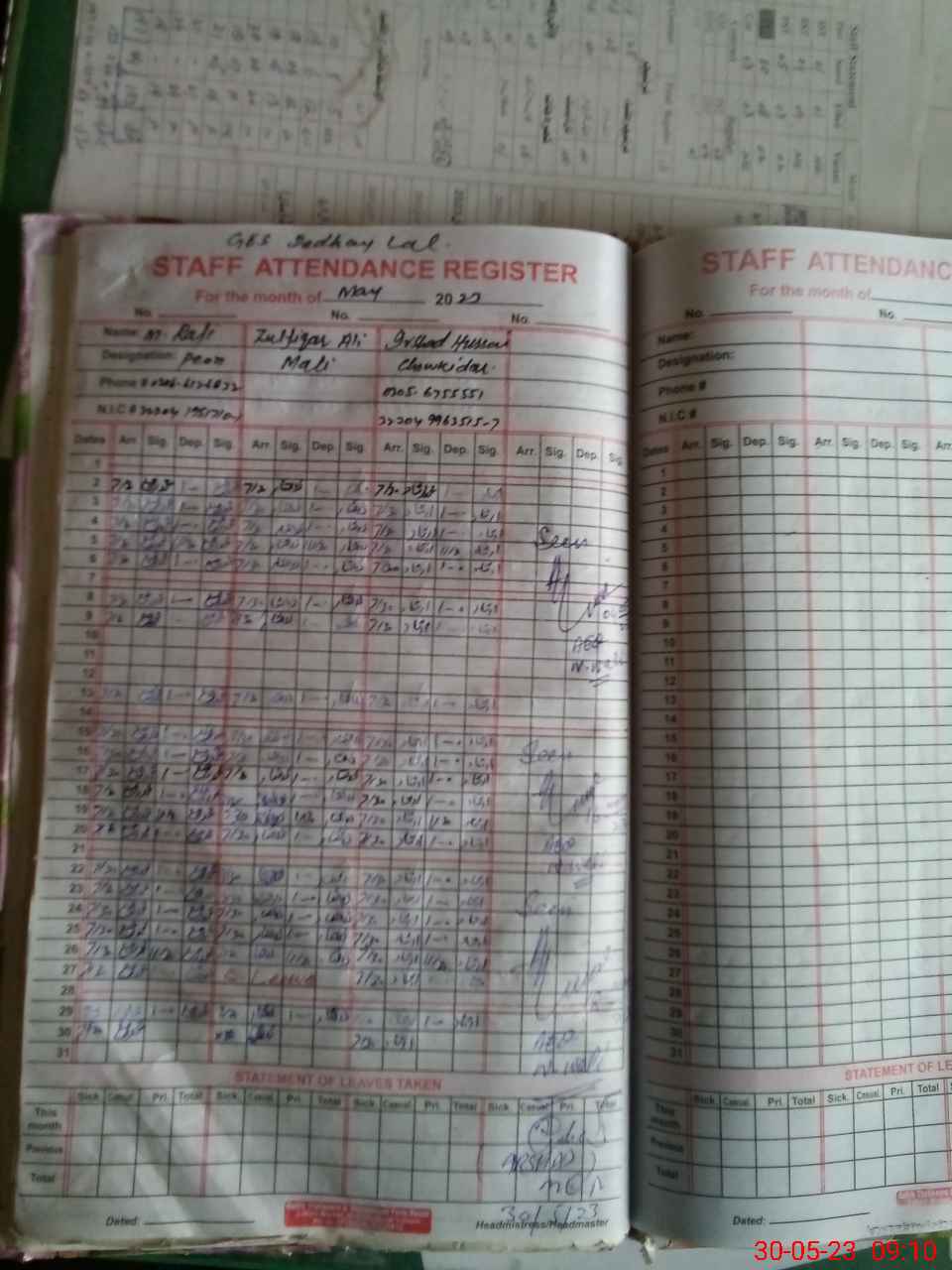 | Name: Mu**** Sh**** Kh**** Designation: (School Headmaster's/Headmistress's) S.S.T.(GEN) Phone/Cell Number: 03**** |