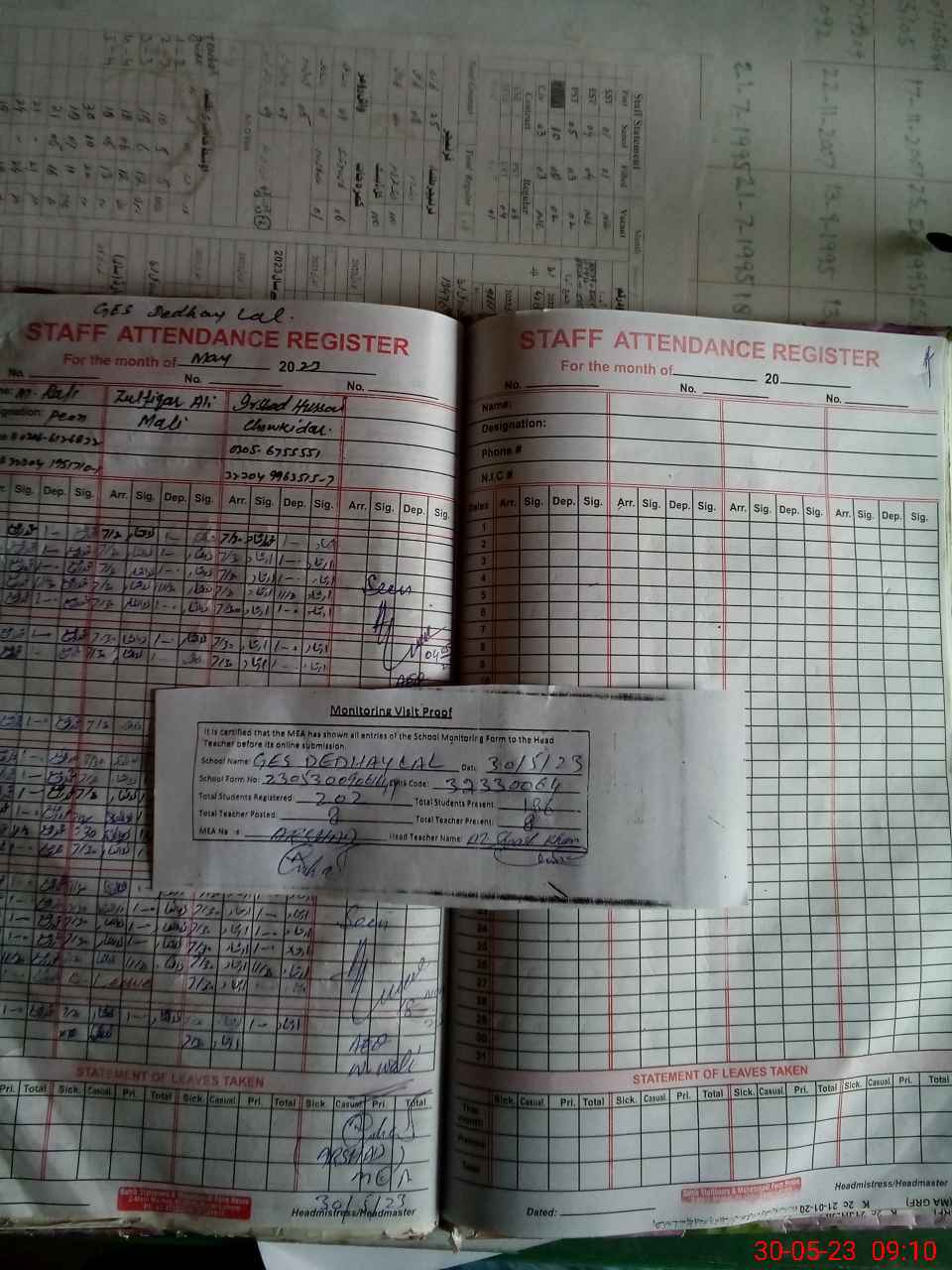 | Attendance Register | Head Teacher | MEA with School | Visit Proof |