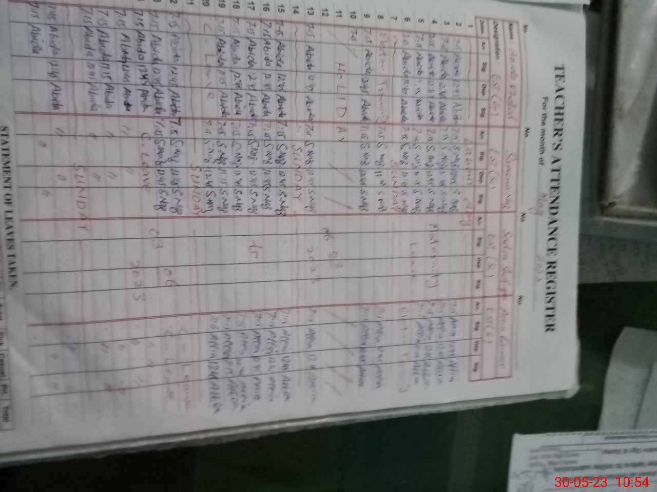 | 36**** | Za**** Ma**** | Contract | 0 | 30 | 0 | 0 | 0 | 0 | 0 | 0 | 0 | Exam Duty | |