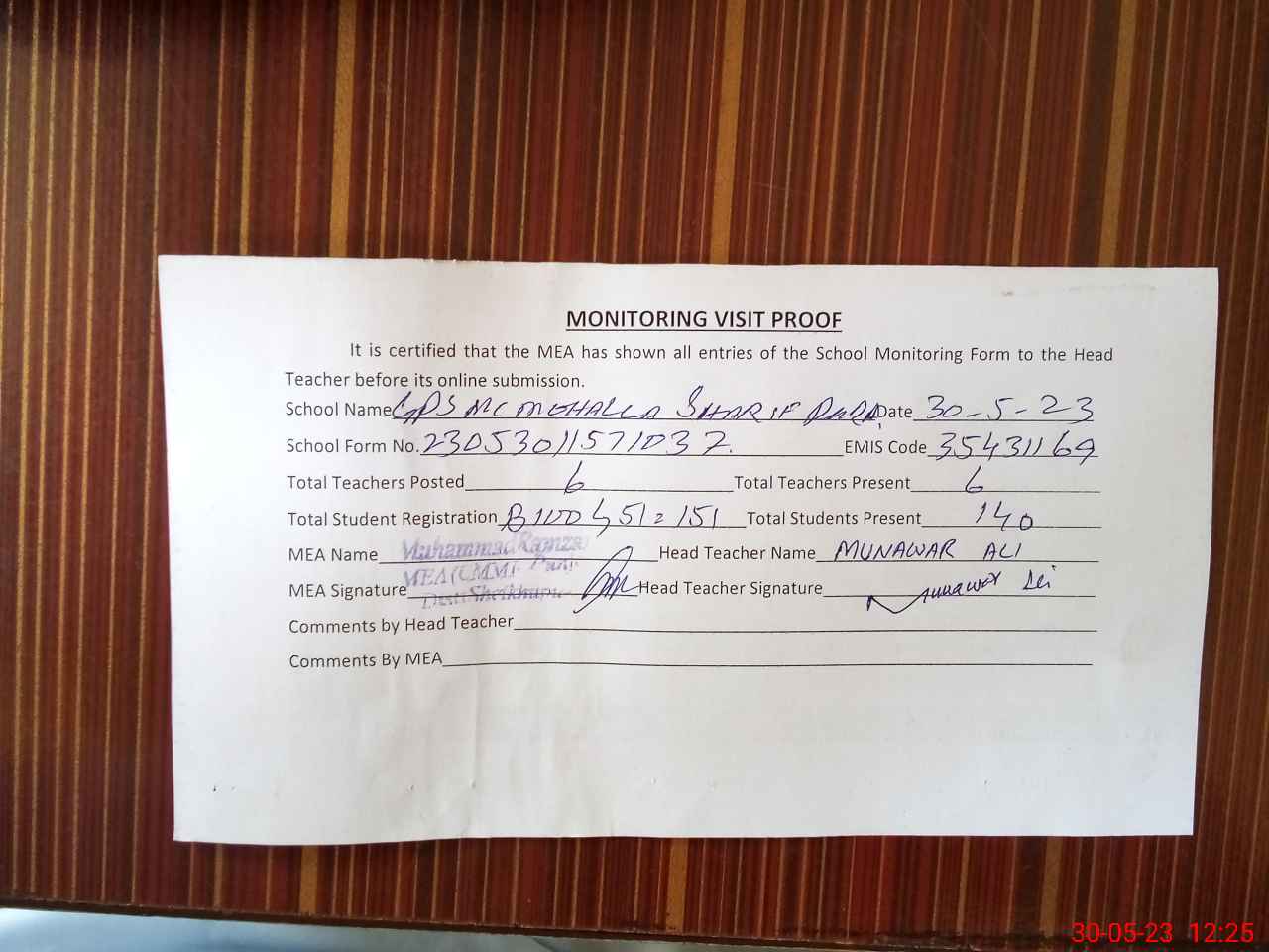 | EMIS Code: 35431169 | Name of School: GPS MC MOHALLAH SHARIF PURA | |||